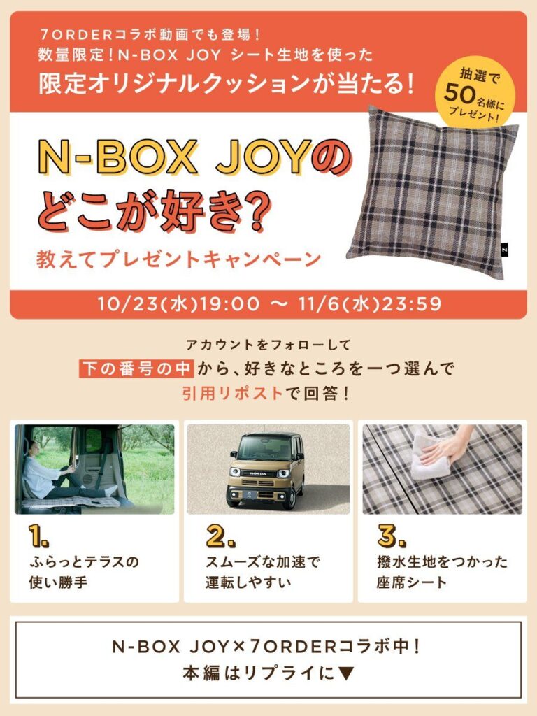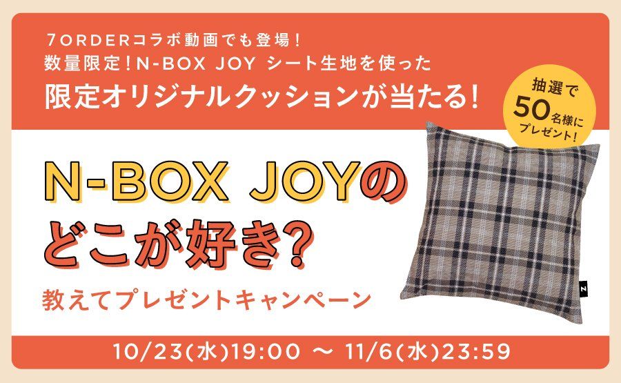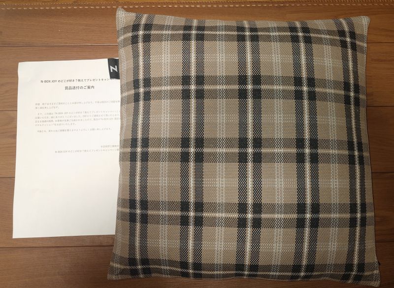 当方年末にN-BOX JOY納車予定なのですが、凪パパさんが昨年当選されたクッションがどうしても欲しくてヤフオクやメルカリを探しているのですがいっこうに見つかりません。