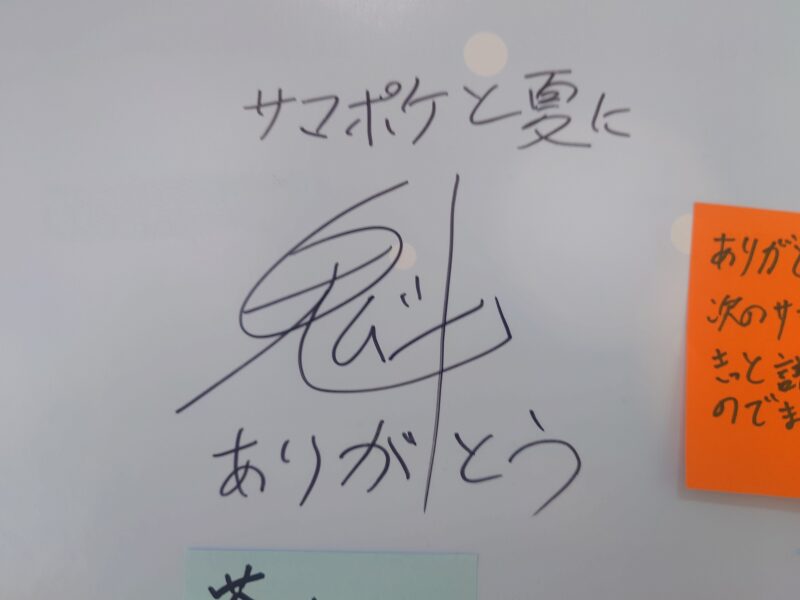 入口左には、スタッフのサインやコメント、観覧者のコメント付箋が貼られたボードがありました。脚本の魁さんのコメントもありました。